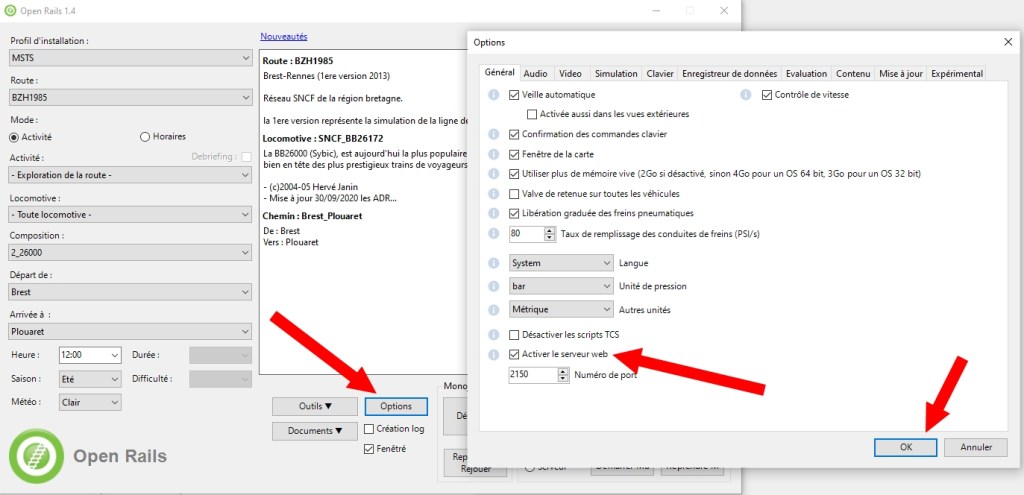 La première étape est d’activer le serveur web dans les options d’OpenRails. Le choix du port peut être laissé par défaut.